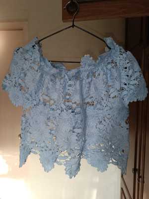 Изготовлен из лёгкой ткани с кружевной отделкой. Длина изделия примерно - 35 см, ширина подмышками - 45 см.