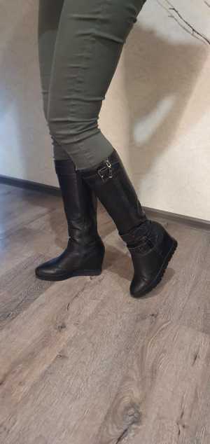 Продам кожанные тёплые сапоги на танкетке в отличном состоянии!,размер 39.высота танкетки 6см.