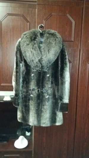 В очень хорошем состоянии мутоновая шуба с песцовым воротником. Размер 46-48. 071-439-84-53