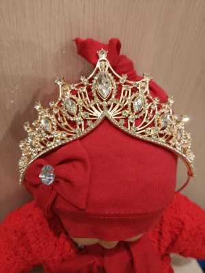 Диадема для девочек. Золотистая металлическая оправа с яркими белыми стразами. Подарок к Новому году.