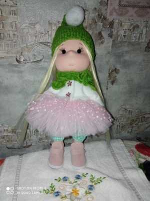 Кукла сшита из трикотажа, одежда из фатина, флиса, акриловой пряжи, высота игрушки 28-29 см