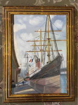 Копия картины А.П. Боголюбова "Французские пароходы в Гавре" (масло, холст)25х35.