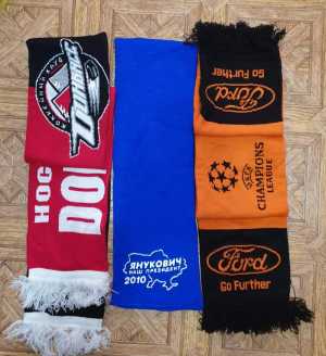 Шарф агитационный Наш президент Янукович 300р Лига чемпионов 500р Хокеейный клуб Донбасс 500р