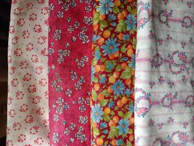 Отрезы тканей ещё советских. Ширина у всех 0,8-0,9 м. Ситец, вафельное полотно- 100 руб./м Сатин, тик, бязь - 200 руб.