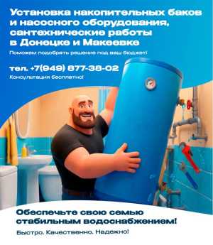 Производим услуги по сантехнике в Донецке,установка накопительных баков,водомеров,пайка труб,установка бойлеров,унитазов...