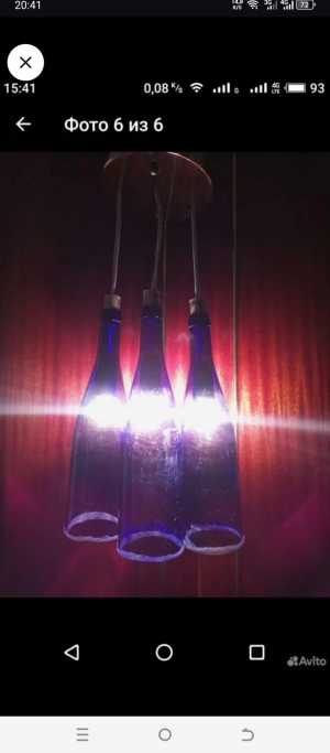 Светильник из винных бутылок можно поставить лампочки экономики, стоят 15в СССР. Хорошо впишется в Барсик и тд.