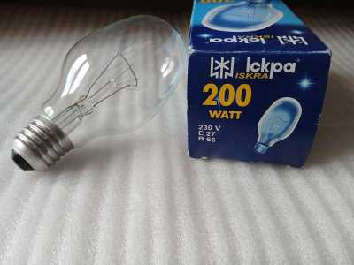 Лампа накаливания прозрачная 200Вт Е27 230V Производство ISKRA Украина 1шт. Новая.