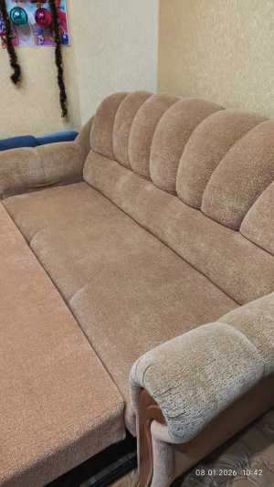 Продается новый угловой диван идеально подходит для сна. Бежевый цвет и тканевая обивка добавят уют в ваш интерьер.
